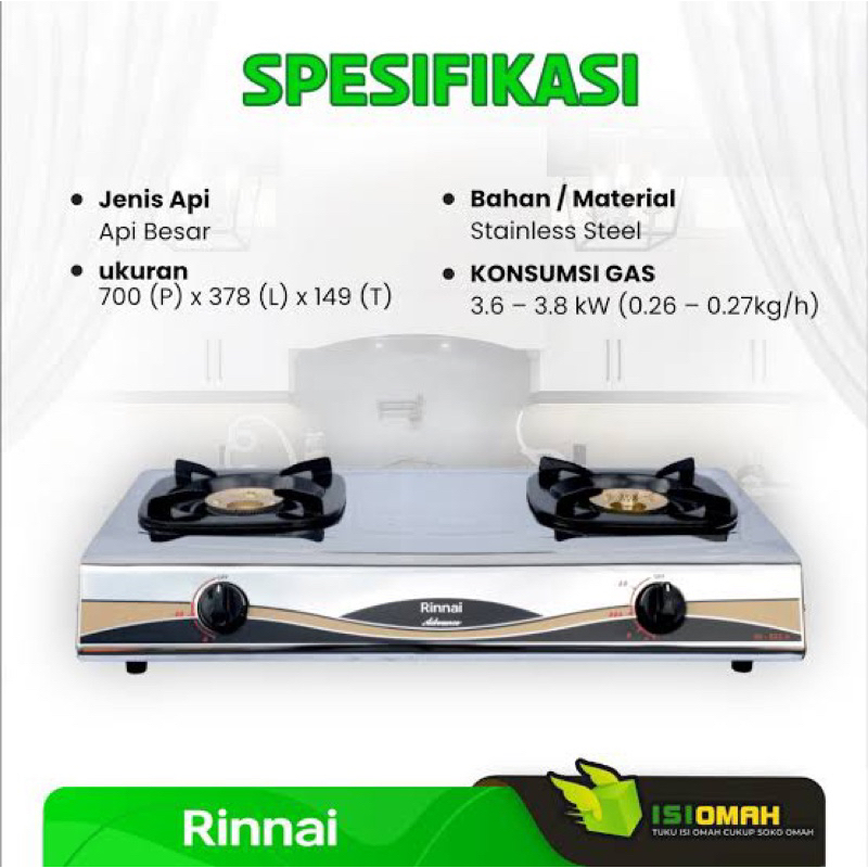Detail TERMURAH!! Kompor Gas Rinnai 2 Tungku RI 522A 522 A Stainless Steel