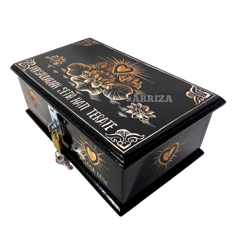 Perlengkapan Rumah > Organizer Rumah > Box, Tas, & Keranjang Penyimpanan > TERMURAH! KOTAK MORI PSHT MOTIF Bunga Teratai DARI KAYU JATI (FREE UKIR NAMA) TEMPAT PENYIMPANAN SABUK MORI PENCAK SILAT SETIA HATI TERATE 1922