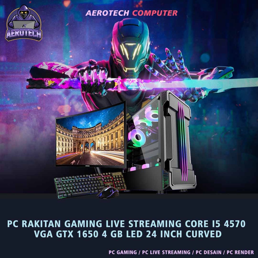 Detail TERMURAH PC RAKITAN INTEL I5 4590|VGA GTX 1650 4 GB|RAM 16 GB|SSD 256 GB|HDD 500GB LENGKAP LED 24 INCH EDITING DESAIN GAME DAN LIVE STREAMING