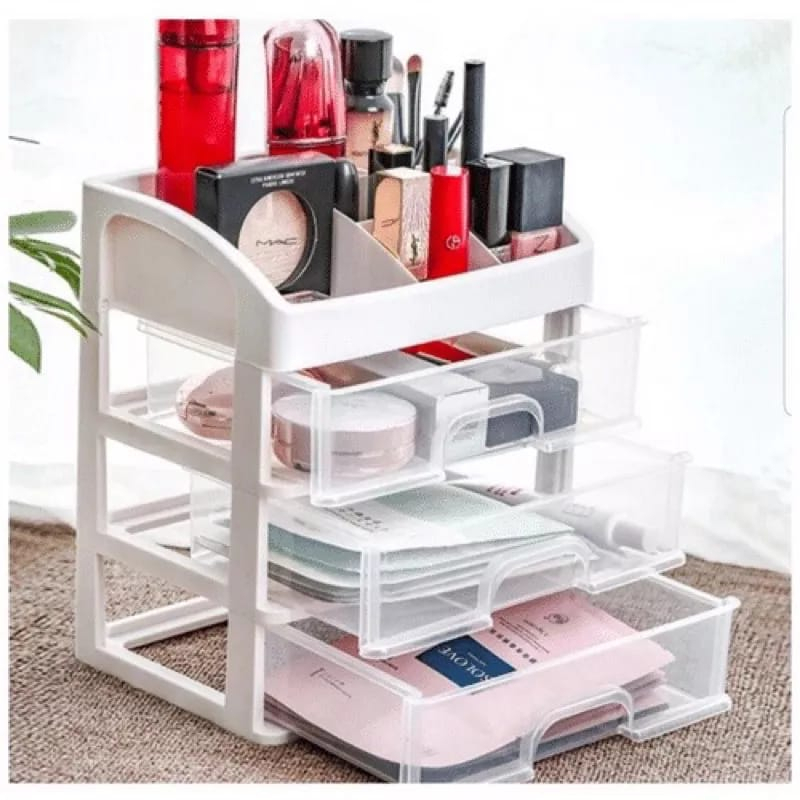 Detail TERMURAH! RAK KOSMETIK PLASTIK 3 SUSUN , RAK LACI TEMPAT ALAT MAKEUP ,RAK LACI SERBAGUNA 3 SUSUN