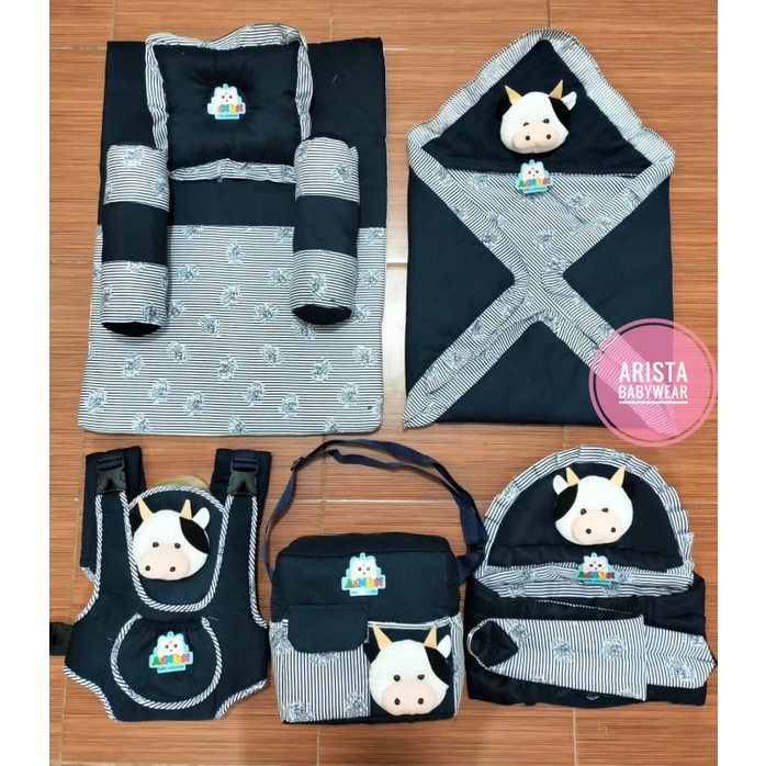 Set 5in1 1.gendongan depan 2.gendongan samping 3.selimut 4.tas ukuran sedang 5.Matras+bantal+guling