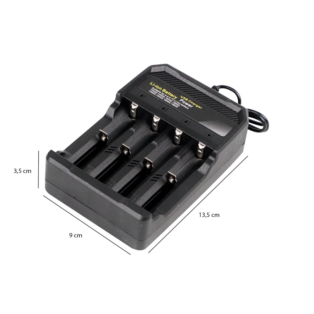 ISI PAKET : 1 x Taffware Charger Baterai USB Lithium 18650 4 Slot