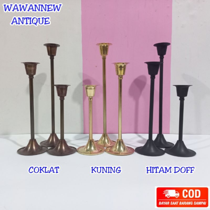 Detail TERMURAH Tempat Lilin Minimalis Kuningan Antik / Candle Holder 20cm