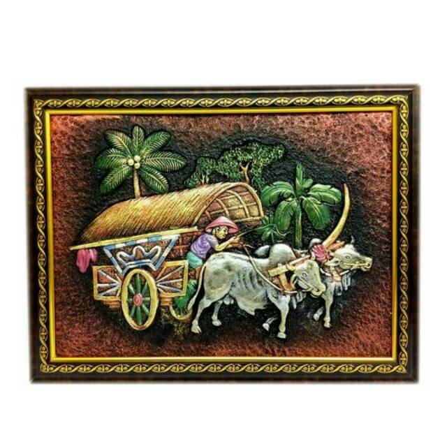 Perlengkapan Rumah > Dekorasi > Bingkai Foto & Pajangan Dinding > TERMURAH! TERLARIS! Lukisan Timbul 3D Relief Gambar Petani dan Kereta Sapi 42x32 cm Dekorasi Rumah