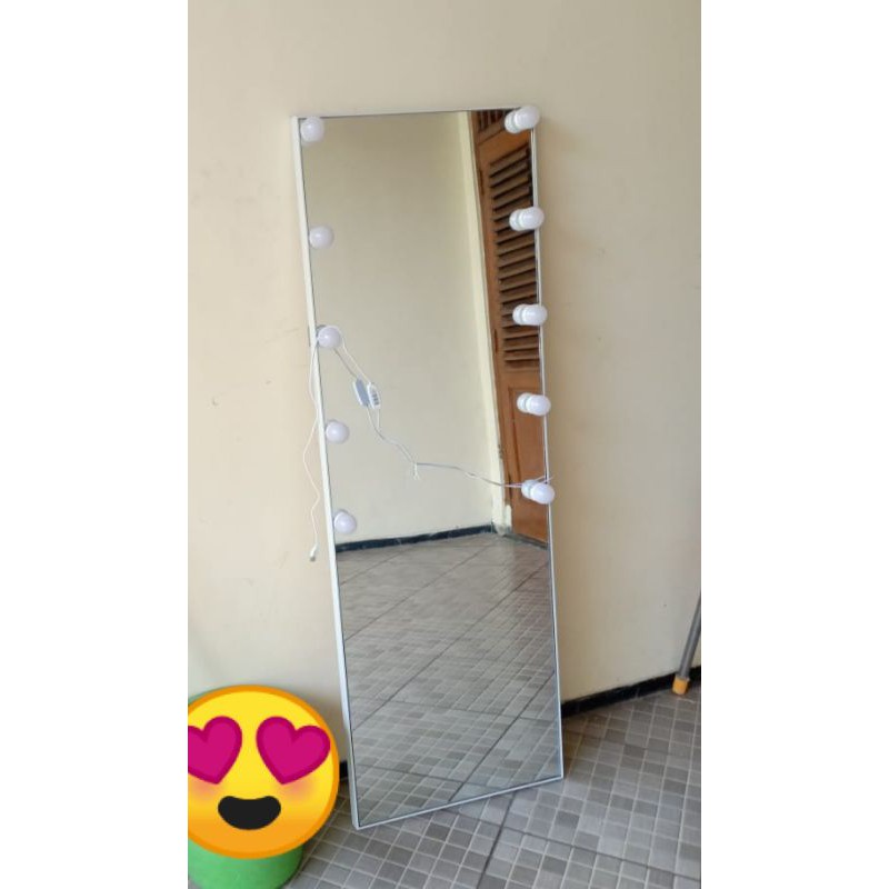kaca cermin GANTUNG framless+lampu size 150* 40cm (full body) size 150x50 full body size 150x60 full body spesifikasi: - tebal kaca 3ml - lapis triplek ( anti jamur) -frame fiber Anti rayap dan tahan air. -frame tebal 3cm ( putih, hitam) - lampu 10/14/20