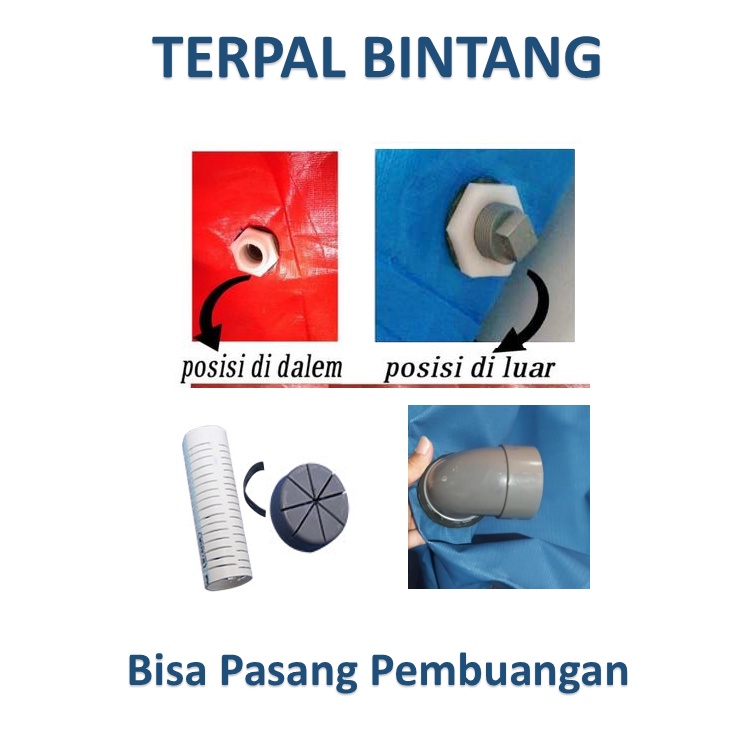 ✅ KELEBIHAN TERPAL BINTANG • Proses Sambungan Menggunakan Mesin Press • Disekeliling Terpal Sudah Terpasang Lobang Tali • Pembuangan Sudah Terpasang • Anti Air / Efek Daun Talas • Tanpa Lipatan • Anti Jamur