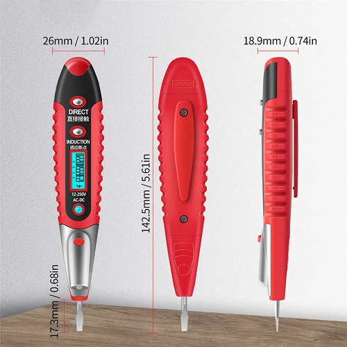 Ringan, mudah dibawa dan dioperasikan. Aplikasi: cocok untuk mendeteksi arus 12-250v ac dan dc. Cukup mendeteksi garis nol, garis fasa dan titik putus arus ac, serta konduktor non-hidup dan on-off. Sirkuit on-off test: Tekan tombol "inductive breakpoint test", simbol yang diisi adalah garis fasa, jika ada breakpoint di sirkuit hidup, pindahkan pena tes, titik di mana simbol muatan menghilang adalah titik istirahat. Perhatian: tidak dapat mengukur tegangan AC melebihi 250V!