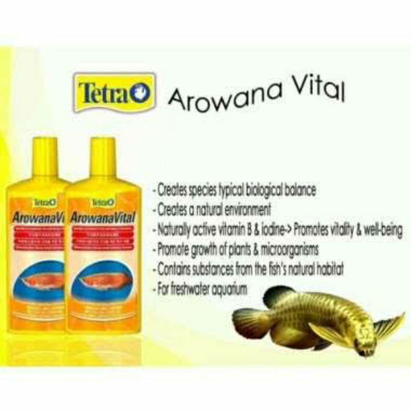 Tetra Aqua Arowana Vital mengandung lodine dan Vitamin B yang sangat penting untuk kelangsungan hidup Arowana. penggabungan vitamin B (B2, B6, B12. iodine dan lain-lainnya) menjadikan ikan arowana tumbuh sehat, kualitas warna ikan terjaga dan meningkatkan vitalitas ikan.