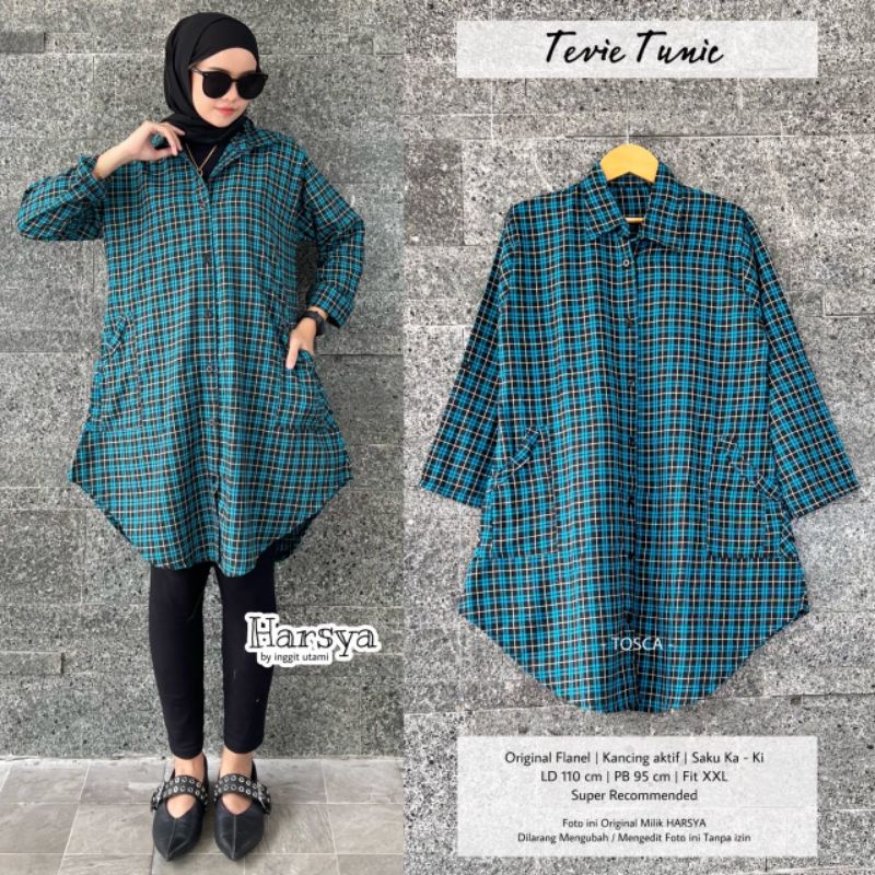 TEVIE TUNIK BY HARSYA / FLANEL TUNIK MUSLIMAH / Tunik wanita kotak-kotak Kekinian