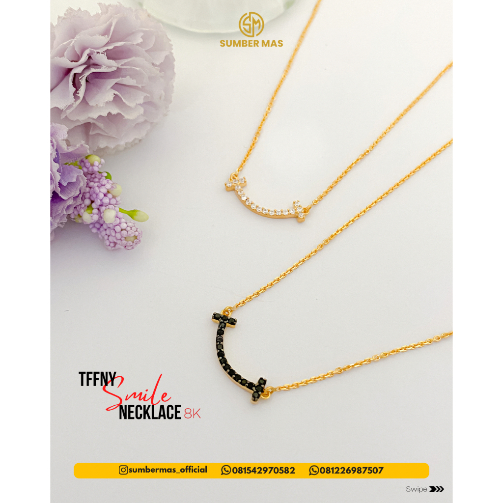 Nama Barang : TF*NY SMILE NECKLACE Berat : 2.85gr - 2.9gr Ukuran : 42cm Variasi : GOLD Kadar Emas : 8K (375) Keuntungan Membeli Perhiasan di Toko Emas Sumber Mas