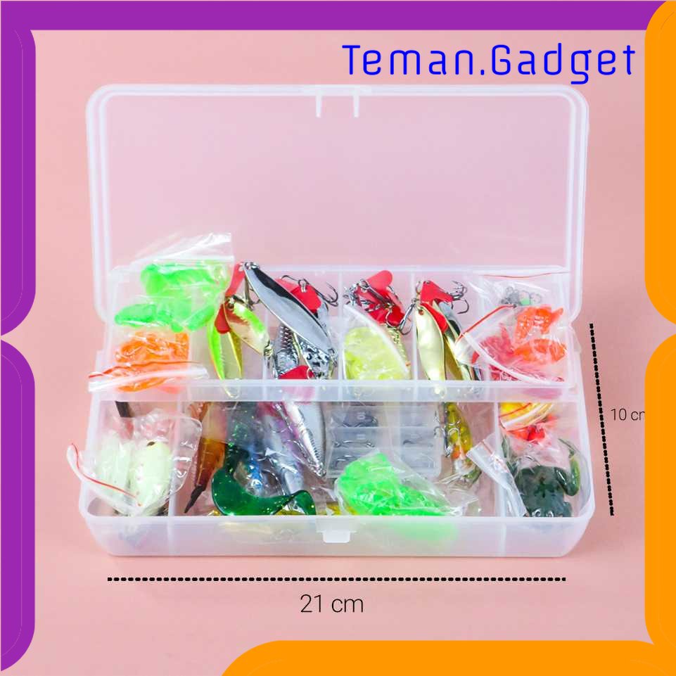 Hobi memancing tidak lengkap jika tidak memiliki set umpan pancing ini. Umpan pancing palsu ini terdiri dari 178 buah umpan berbeda bentuk dan ukuran. Dengan set ini, Anda bisa menyesuaikan jenis umpan dengan ikan yang ingin ditangkap untuk hasil yang paling maksimal. Fitur Tipe Umpan Pancing Berbeda Satu set umpan pancing ini terdiri dari banyak umpan pancing dengan bentuk dan ukuran yang berbeda-beda mulai dari ikan hingga kodok dan jangkrik. Cocok Dengan Semua Jenis Ikan Dengan berbagai jenis umpan pancing, Anda bisa memilih umpan pancing yang paling cocokdengan jenis ikan yang ingin ditangkap untuk mendapatkan hasil paling maksimal. Kotak Penyimpanan Supaya tidak berantakan, pada paket penjualan diikutsertakan juga kotak penyimpanan lengkap dengan sekat - sekat kecil untuk menyimpan semua umpan pancingnya.