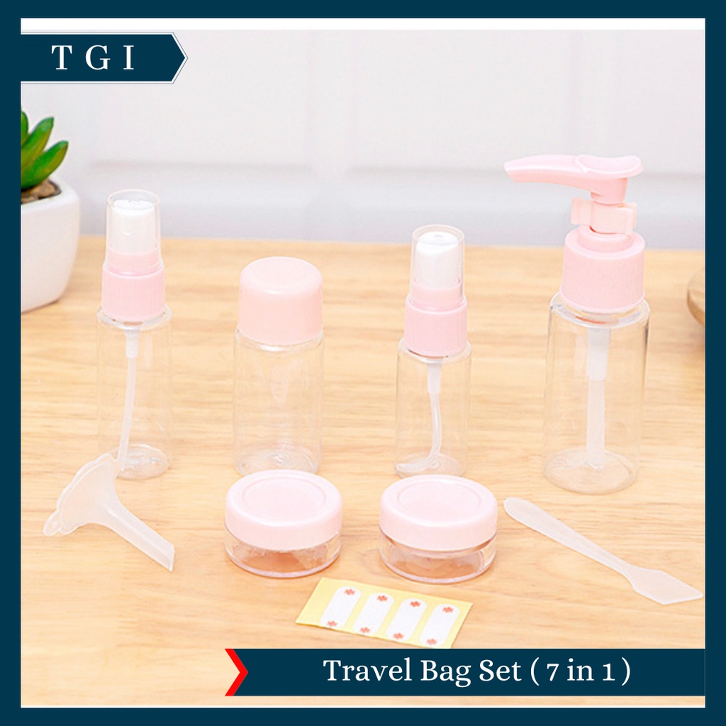 Tas Wanita > Koper & Tas Travel > Botol & Wadah Isi Ulang > TGI - BOTOL SPRAY MINI TRAVELLING / WADAH BOTOL ISI ULANG / BOTOL MINI SET 6 IN 1 TRAVELLING/ TRAVEL BOTTLE SET MULTIFUNGSI