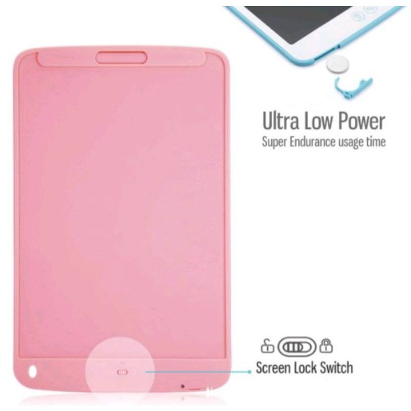 Spesifikasi Produk : - 8.5" LCD Drawing Writing Tablet. - Bahan : ABS. - Ukuran : 22.6 x 14.5 x 0.3cm - Power Supply : Baterai Kancing