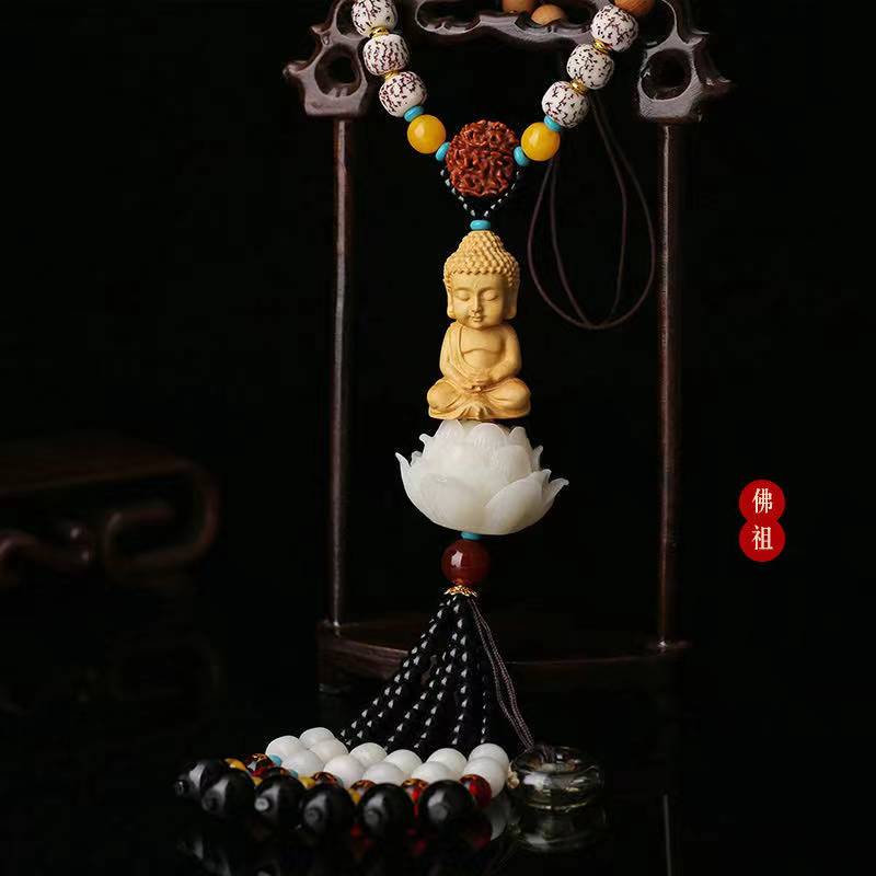 Otomotif > Aksesoris Interior Mobil > Aksesoris Interior Mobil Lainnya > The new white lotus car pendant boxwood Buddha beads safe travel kaca spion ornamen kayu solid aksesoris interior mobil