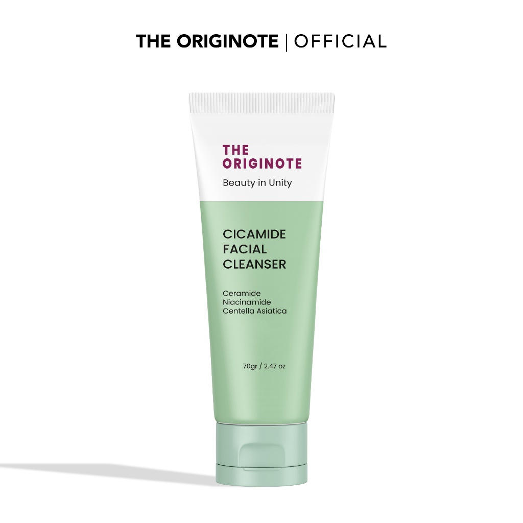 The Originote Cicamide Facial Cleanser Netto 70gr Pembersih wajah dengan kandungan Ceramide, Niacinamide dan Centella Asiatica yang berfungsi untuk membantu menjaga dan merawat kelembapan kulit wajah, mengangkat dan membersihkan minyak berlebih serta membantu mencegah timbulnya jerawat dengan kandungan ringan yang membantu merawat skin barrier wajah. MANFAAT Membersihkan wajah dari debu, minyak dan sisa makeup Mencegah timbulnya jerawat Membantu merawat skin barrier CARA PENGGUNAAN Basahkan wajah dan tuangkan secukupnya Cicamide Facial Cleanser pada ujung jari, pijatkan perlahan dan secara rata ke seluruh area wajah. Bilas dengan air atau dengan lap yang bertekstur halus. Untuk hasil yang lebih maksimal, gunakan Cicamide Facial Cleanser dua kali dalam sehari pada pagi dan malam hari. INGREDIENTS Water, cocamidopropyl betaine, peg-90 glyceryl isostearate, sodium laureth sulfate, glycerin, sodium chloride, sodium methyl cocoyl taurate, phenoxyethanol, laureth-2, methylparaben, niacinamide, butylene glycol, ethylhexylglycerin, propylene glycol, centella asiatica extract, caprylic/capric triglyceride, hydrogenated lecithin, hexylene glycol, stearic acid, cholesterol, ceramide NP