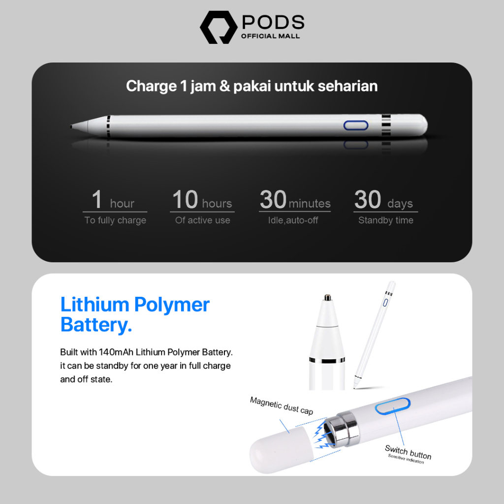 Detail The Pods Stylus Pen [2023 Exclusive] Universal for IOS & Android Wireless Stylus Pencil by Pods Indonesia