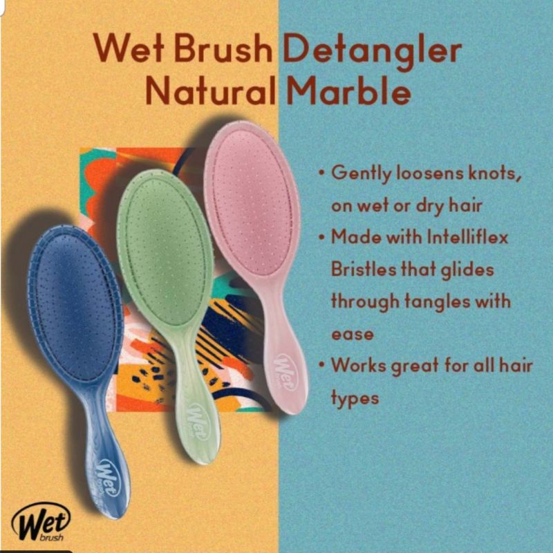 Dalam pembelian ini mendapatkan : -1pcs The Wet Brush Natural Marble Limited Edition NATURAL MARBLE will give camouflage marble prints that resemble aerial landscapes, splatter patterns that emulate sediment. The Wet Brush merupakan sisir yang sangat fenomenal dan no 1 terbaik di dunia (masuk CNN, Fox, Wall Street) Apa yang membedakan WetBrush dgn sisir lainnya? Yaitu INTELLIFLEX Technology INTELLIFLEX Technology adalah teknologi pada ujung sisir yang mampu membedakan kapan sisir harus menegang atau fleksibel tergantung kondisi rambut saat disisir. • Extremely reduce hair loss! • Sisiran lebih nyaman tanpa terjambak • Lebih cepat rapi (super hemat waktu) • Rambut rontok sangat sedikit • Anak sering nangis saat disisir? Ini solusinya Didesain secara khusus untuk mengatasi rambut kusut dan menggumpal dengan mudah Sisiran lancar jaya, super smooth, tanpa sakit, tanpa stres lihat rambut rontok segumpel! Dijamin jatuh cinta kalau udah cobain Bye bye rambut rontok… The WET BRUSH Dapat digunakan pada rambut basah atau kering dan sangat oke untuk rambut ekstensi dan wig. Panjang = 22.5 cm