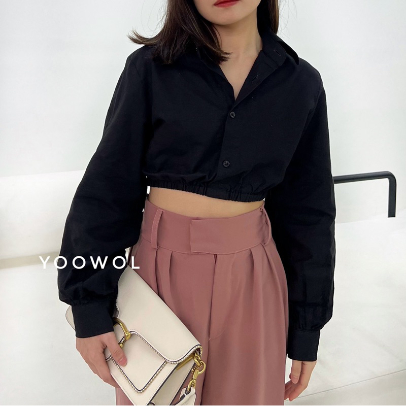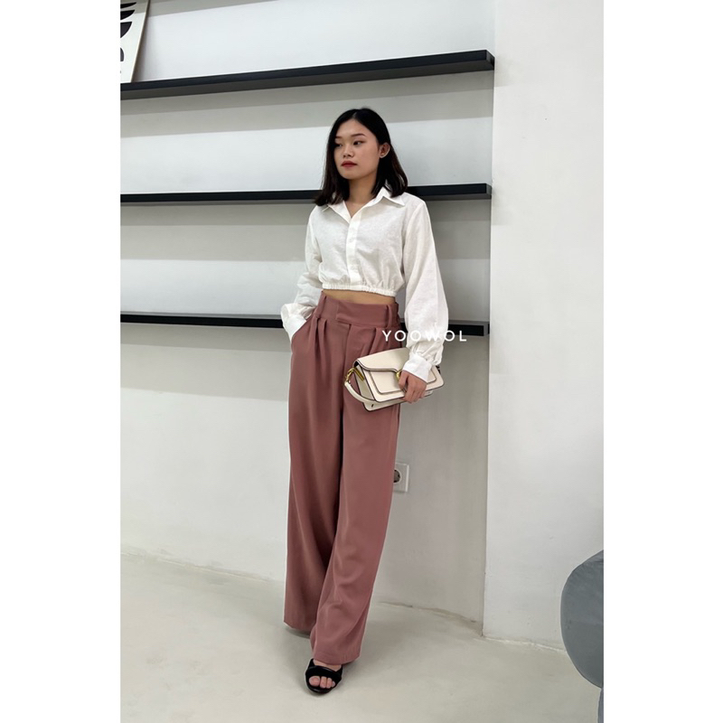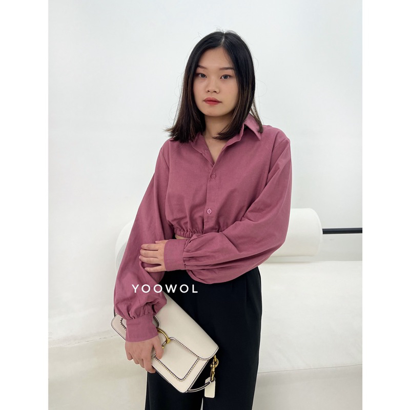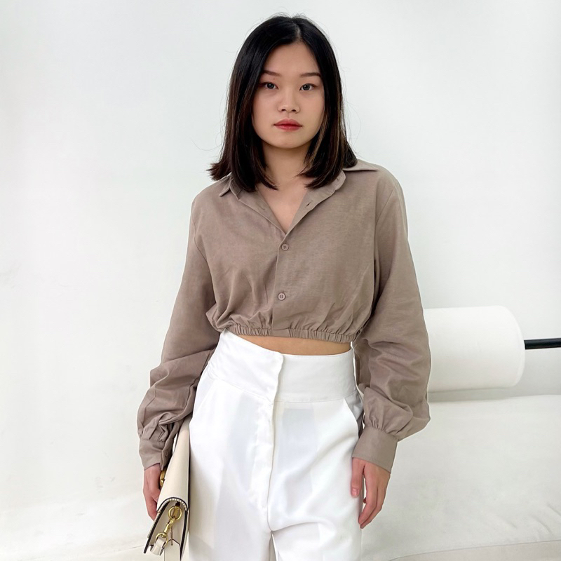 Detail Thea Top/Kemeja Crop Linen Lengan Panjang Material = Linen