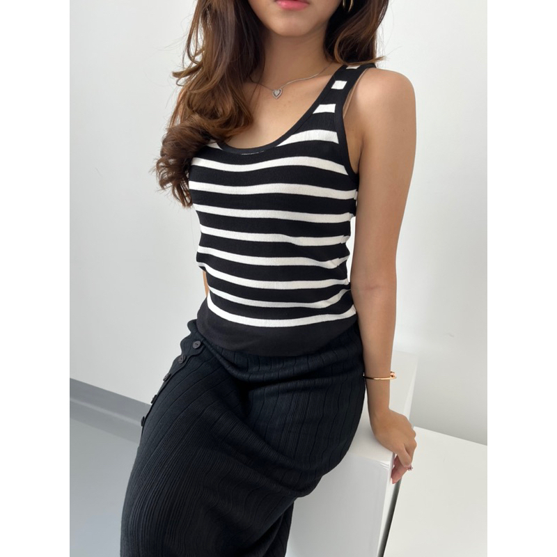TGH - bianca tanktop crop stripe knit import dengan motif salur, berbahan tebal premium import bahan fuell cotton knit melar.