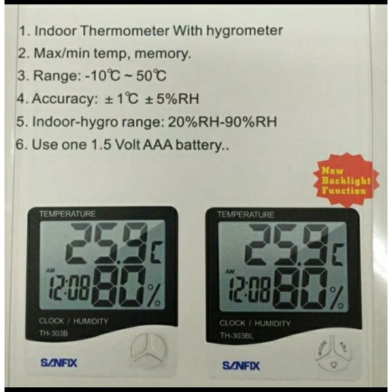 Detail Thermometer / Higrometer Digital SANFIX TH303BL indor and outdor