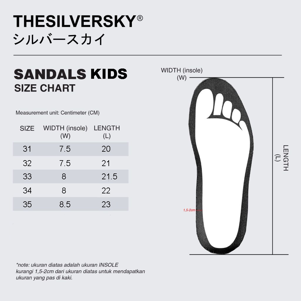 MOHON PERHATIKAN ukuran di SIZE CHART adalah panjang INSOLE SANDAL Unisex, BUKAN panjang kaki. Untuk panjang kaki bisa kurangi 1,5cm-2cm dari size chart, tergantung besar kaki keseluruhan. (DISARANKAN sebelum checkout dicek dahulu untuk ukuran dan sesuaikan dengan size chart, karena setelah CHECKOUT tidak bisa tukar size)