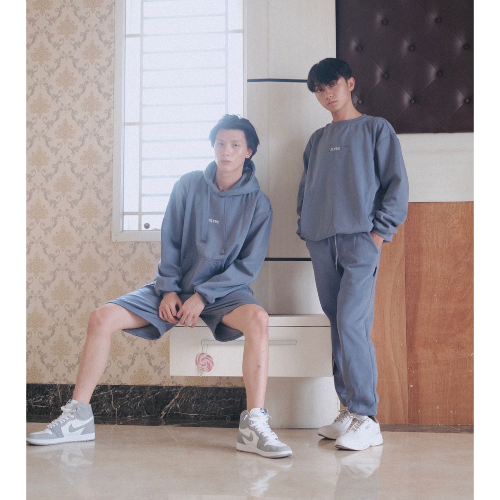 Detail Thesilversy Slvrs Bordir Hoodie dan Celana Pendek Bordir SLVRS Premium Dusty blue