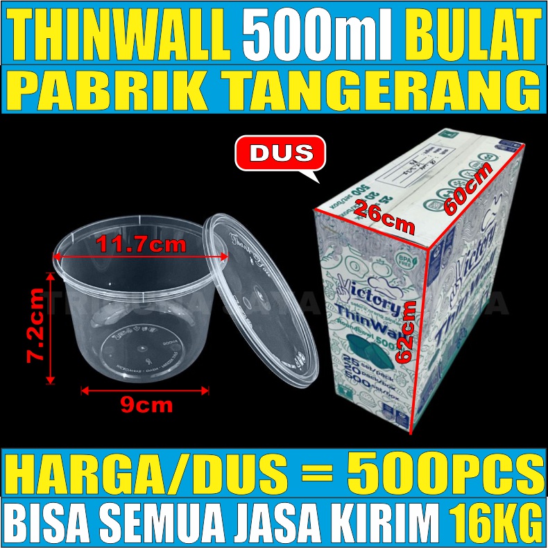 Thinwall Bowl 500ml Dus 500pcs Victory Harga di atas untuk 500 pcs per dus 1 pack isi = 25 pcs 1 Dus = 20 pack x 25 pcs = 500 pcs