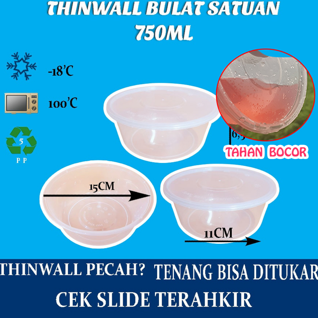 TAMBAHKAN BUBBLE UNTUK PACKING LEBIH AMAN - Thinwall Kotak 650ml / Food Container Box / Tempat Kotak Makan Plastik Murah - Keunggulan: - Bahan PP (Polypropylene) Berkualitas - Tahan Freezer dan Microwave Oven - Anti Tumpah - Langsung Pabrik - Ukuran: 15 x 12 x 5.5cm