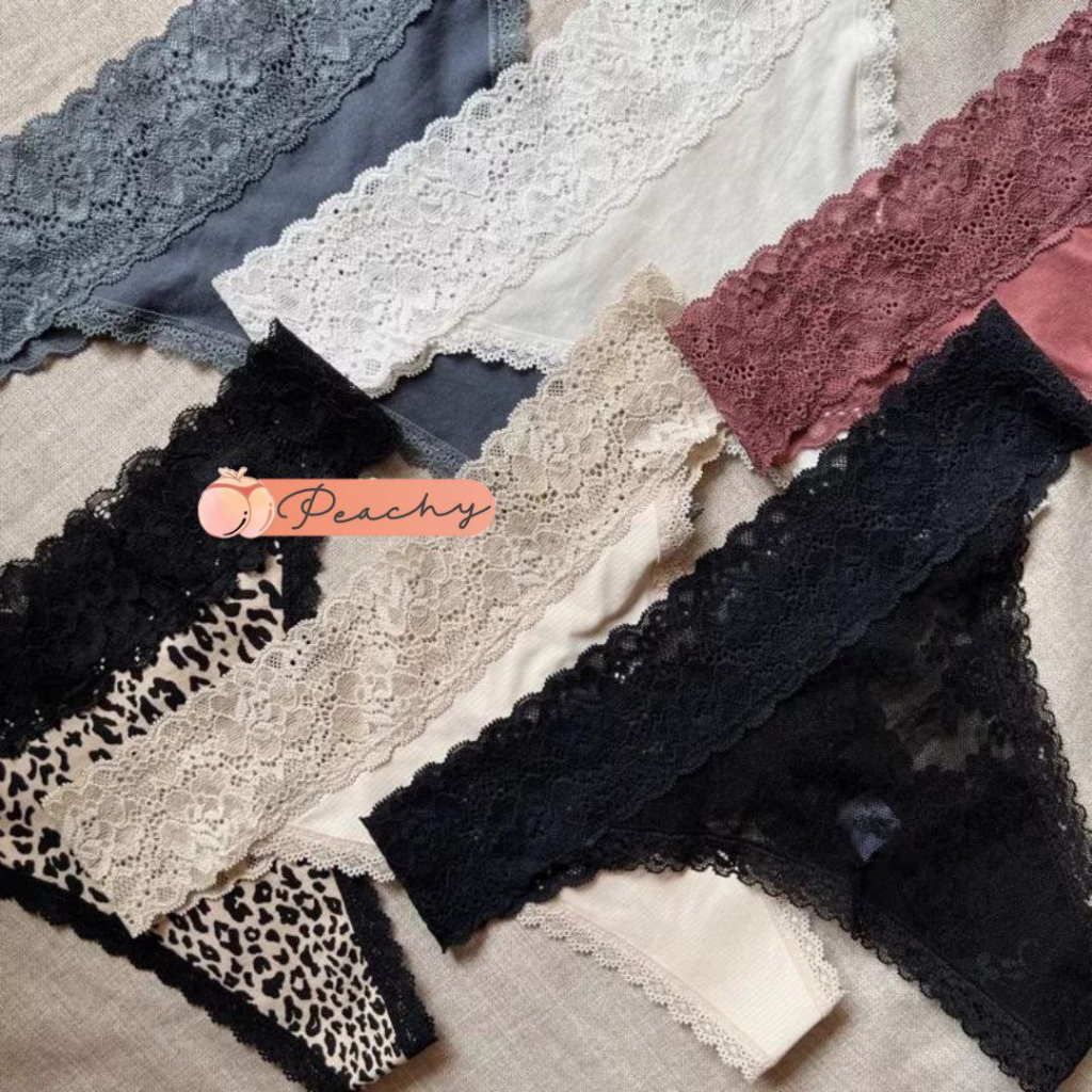 - bahan thong 100% COTTON (katun seperti kaos) nyaman di pakai seharian. - yang warna black, bahan nya full lace tapi lace yang sangat premium ya. tetep adem di pakai dan tidak gatal sama sekali di jamin (miss V nya semua bahan 100% COTTON gak usah takut gatal atau iritasi & sangat nyerap keringat) - bahannya premium bgt ya. bener2 katun yg tipis silky & glides onto your skin like butter. BENER BENER SMOOTH LIKE BUTTER ✨superrr halus dan adem, di jamin akan re purchase abis cobain) - barang limited bgt ya, sekali soldout udah gak restock lagi