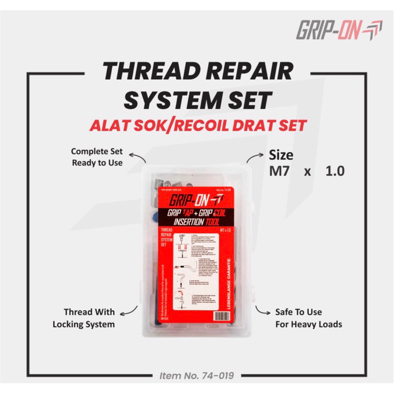 Fungsi: Untuk mengatasi drat yang slek atau jebol. Grip-On menyediakan drat pengganti beserta alat penunjangnya agar memudahkan pengguna dalam memperbaiki drat yang rusak