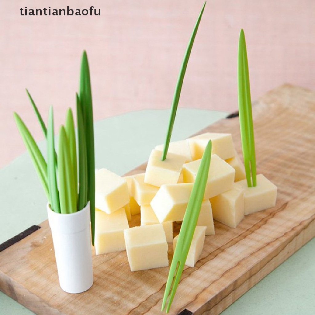 [tiantianbaofu] 10pcs Garpu Buah Tusuk Gigi Daun Plastik Dekorasi Kotak Makan Bento Aksesoris Salad Kecil Tiny Fork Mini Pengambil Kue Untuk Anak Butik