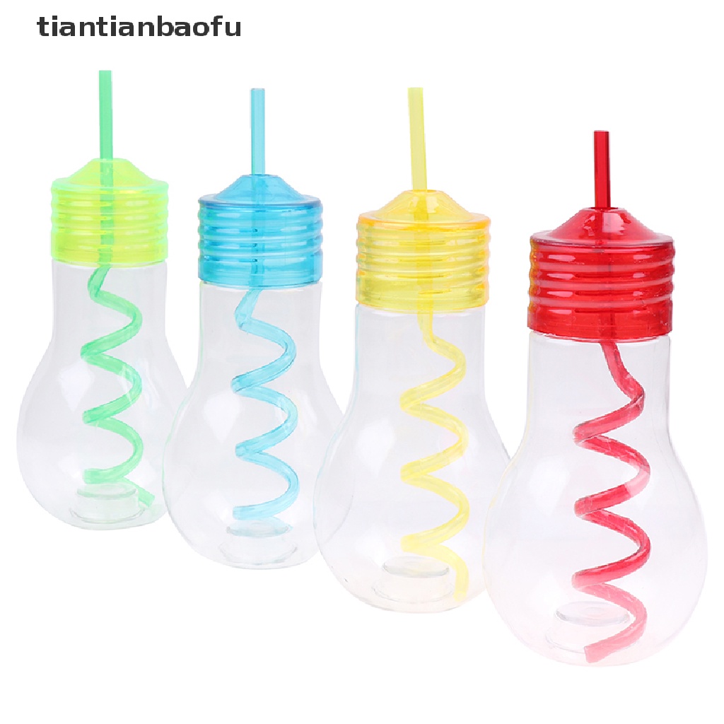Detail [tiantianbaofu] 1pc Kreatif Buatan Bening Bola Lampu Berbentuk Botol Air Plastik Jerami Cangkir Butik