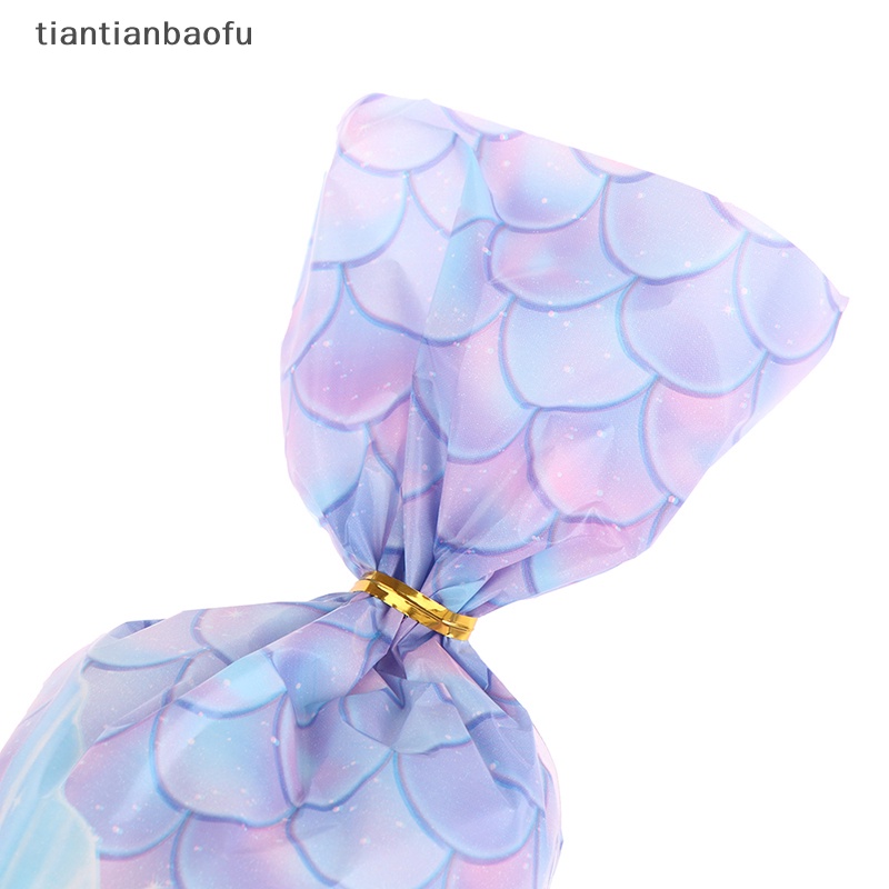 Detail [tiantianbaofu] 50 Pcs Mermaid Pesta Hadiah Tas Biskuit Packing Bag Mermaid Tail Sisik Perlakuan Tas Butik