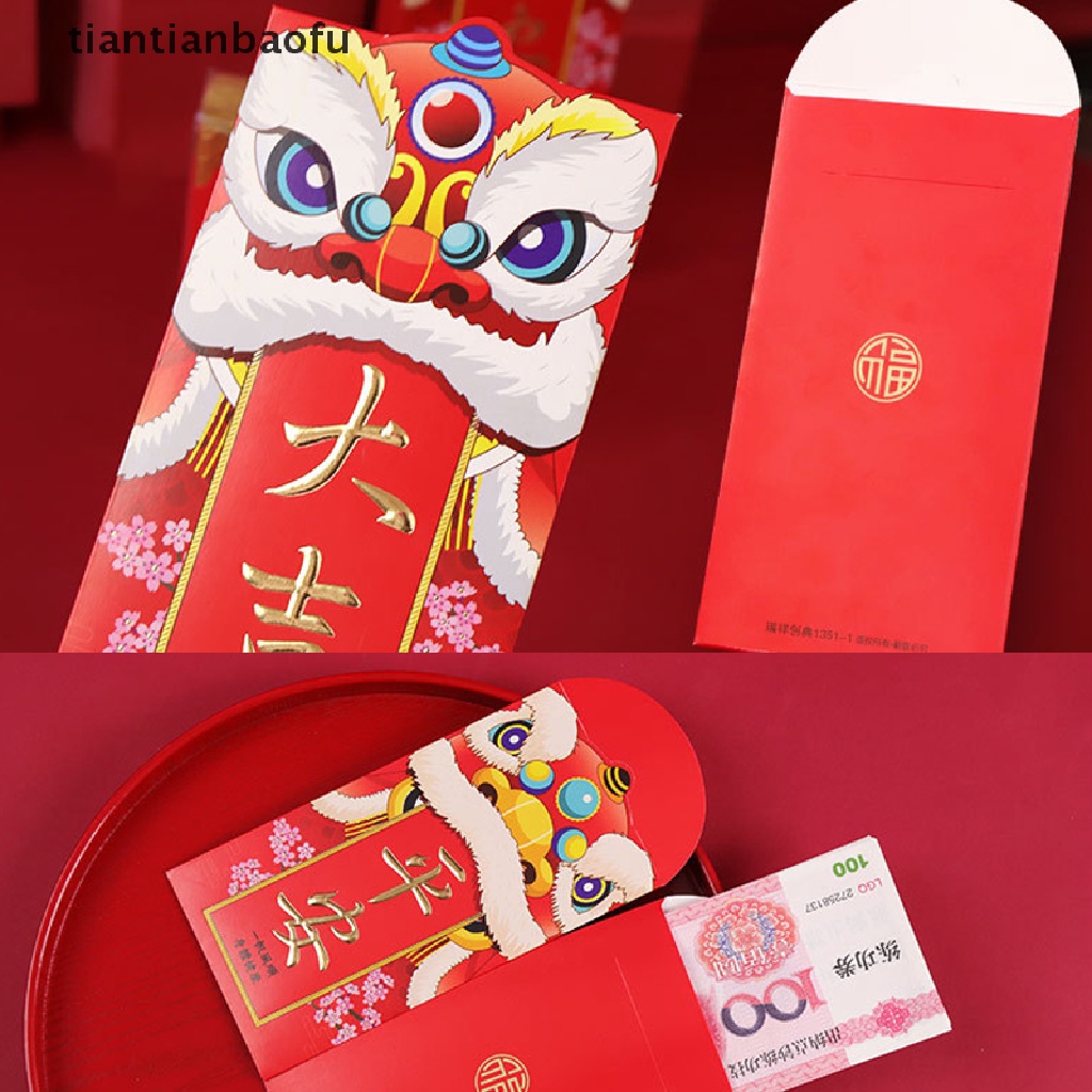 [tiantianbaofu] 6 Pcs Amplop Merah Tahun Baru Kreatif Tari Singa Kartun Tahun Baru Amplop Merah Butik