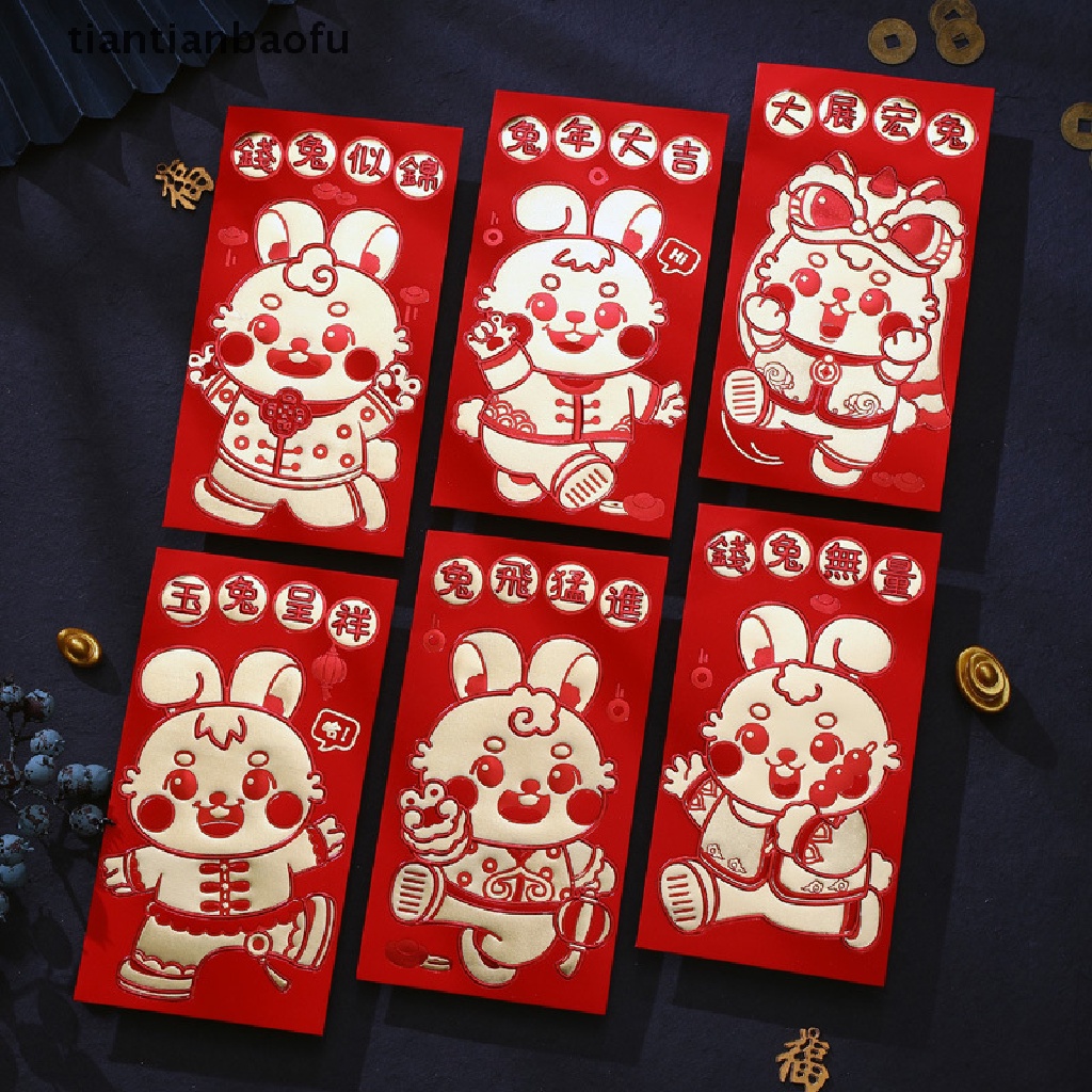 [tiantianbaofu] 6 Pcs Kartun Anak Hadiah Uang Packing Tas Amplop Merah Festival Musim Semi Hongbao 2023persediaan Festival Tahun Kelinci Cina Butik
