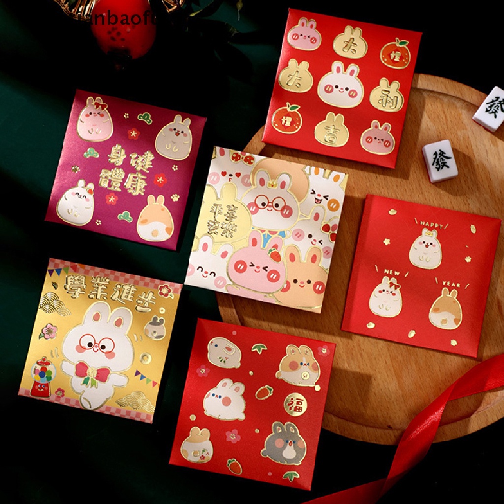 Buku & Alat Tulis > Surat-Menyurat > Amplop & Angpau > [tiantianbaofu] 6pcs Amplop Merah Imlek 2023tahun Kelinci Persegi Saku Merah Kartun Kreatif Yang Dipersonalisasi Amplop Merah Lucu Festival Musim Semi Kantong Uang Merah Hadiah Amplop