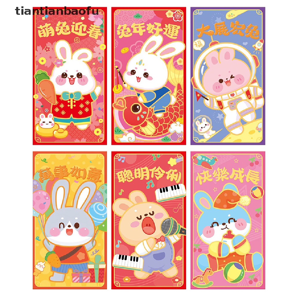 [tiantianbaofu] 6pcs Amplop Merah Imlek 2023 Amplop Uang Tahun Baru Imlek Kelinci Tahun Hong Bao Amplop Paket Merah Untuk Butik Festival Musim Semi