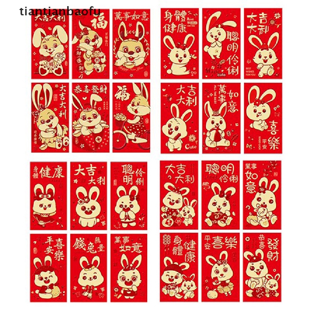 Detail [tiantianbaofu] 6pcs /Set 2023festival Tahun Kelinci Cina Hongbao Bronzing Amplop Merah Butik