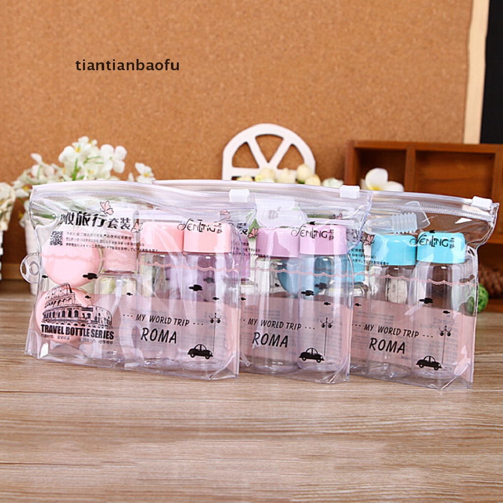 Tas Wanita > Koper & Tas Travel > Botol & Wadah Isi Ulang > [tiantianbaofu] 7pcs/set Es Plong Travel Mini Plastik Transparan Kosong Wadah MakeUp Botol Butik