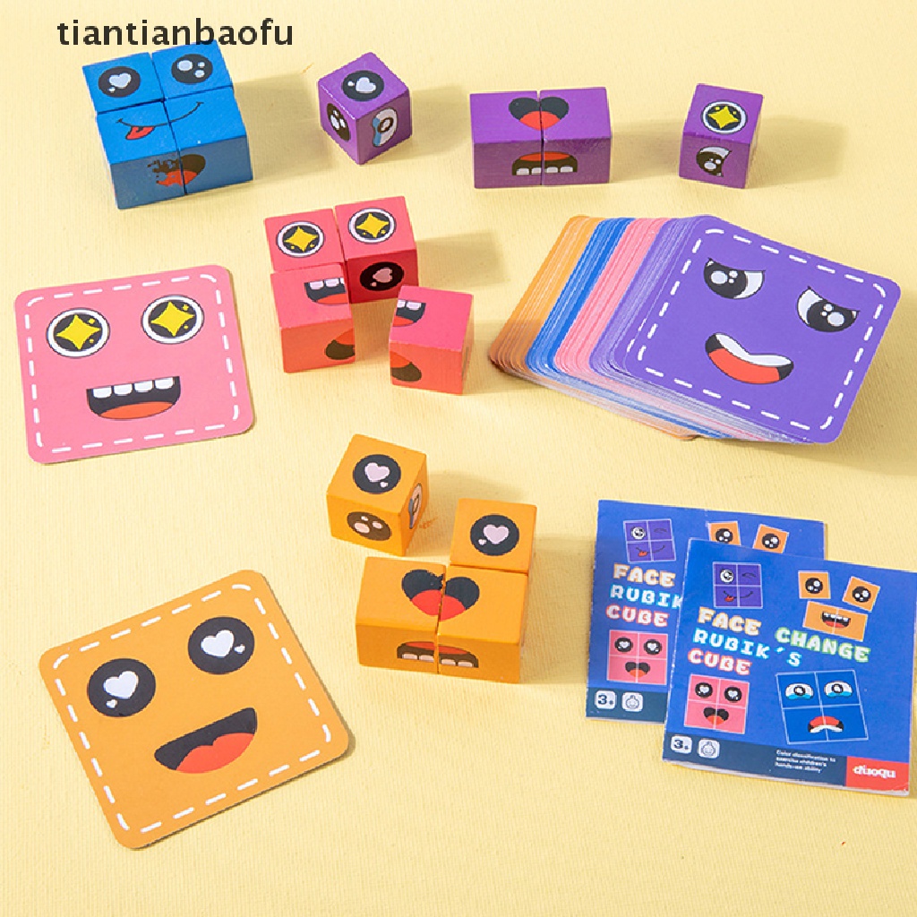 Detail [tiantianbaofu] Emosi Wajah Mengubah Blok Ekspresi Kayu Mainan Puzzle Anak Cube Table Game Belajar Montessori Mainan Edukasi Anak Butik