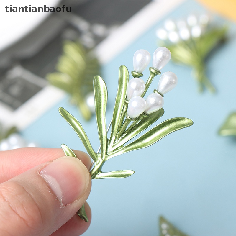 [tiantianbaofu] Vintage Warna Hijau Tanaman Mutiara Pin Pohon Daun Bunga Bros Wanita Perhiasan Hadiah Butik