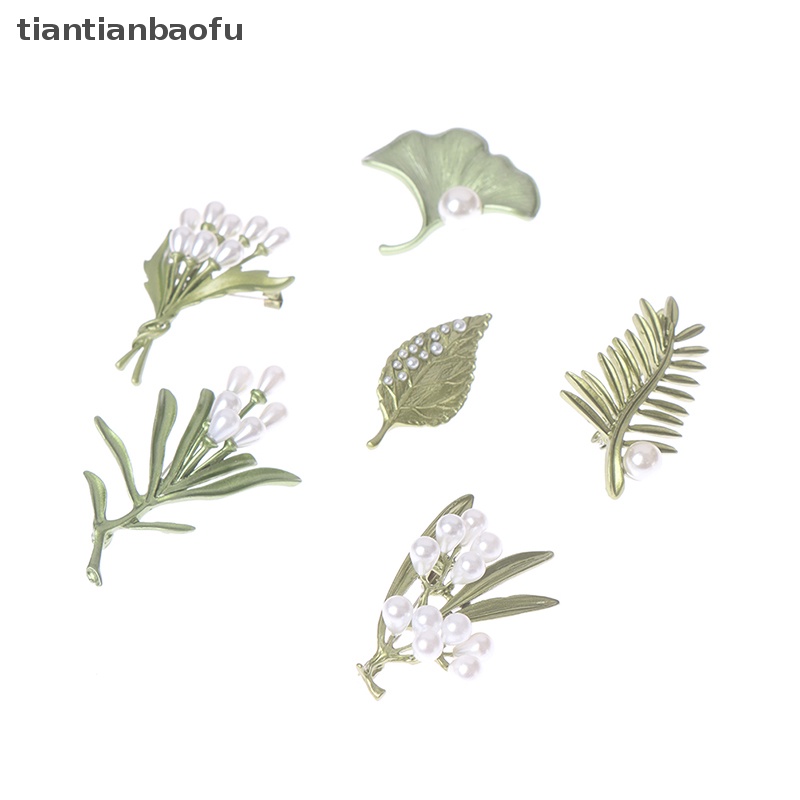 Aksesoris Fashion > Aksesoris Tambahan > Bros & Pin > [tiantianbaofu] Vintage Warna Hijau Tanaman Mutiara Pin Pohon Daun Bunga Bros Wanita Perhiasan Hadiah Butik