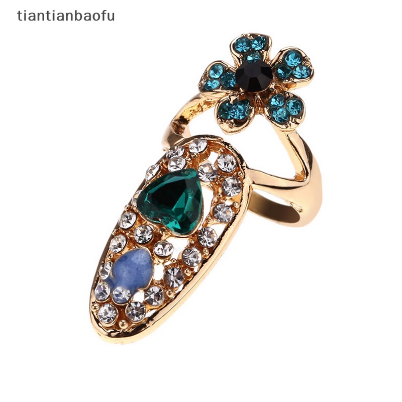 Detail [tiantianbaofu] Wanita Elegan Ikatan Simpul Kuku Cincin Pesona Mahkota Bunga Kristal Jari Kuku Rings Butik