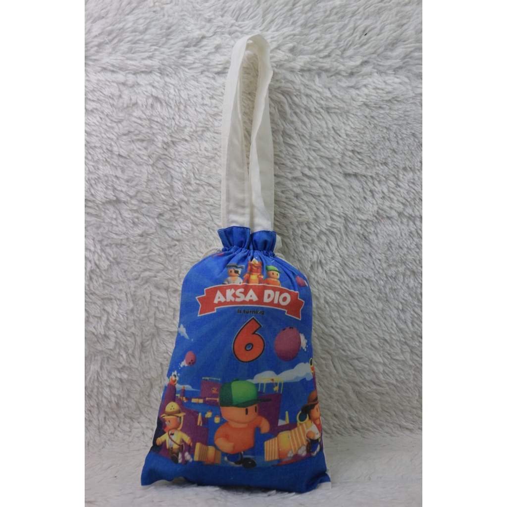 DETAIL: MODEL :TOTEBAG BAHAN :BLACU (HANYA 1 WARNA : PUTIH TULANG) UKURAN :P20XT30 -TOLERANSI UKURAN +/-1 CM- BISA MUAT SNACK KURANG LEBIH 5 BUNGKUS SEDANG CETAK :FULLCOLOR UKURAN KERTAS F4 , CETAK 1 SISI TALI PEGANGAN :DARI BAHAN KAIN BLACU PENUTUP :SERUT TALI SUMBU KATUN WARNA PUTIH TULANG MINIMAL ORDER 10 PCS
