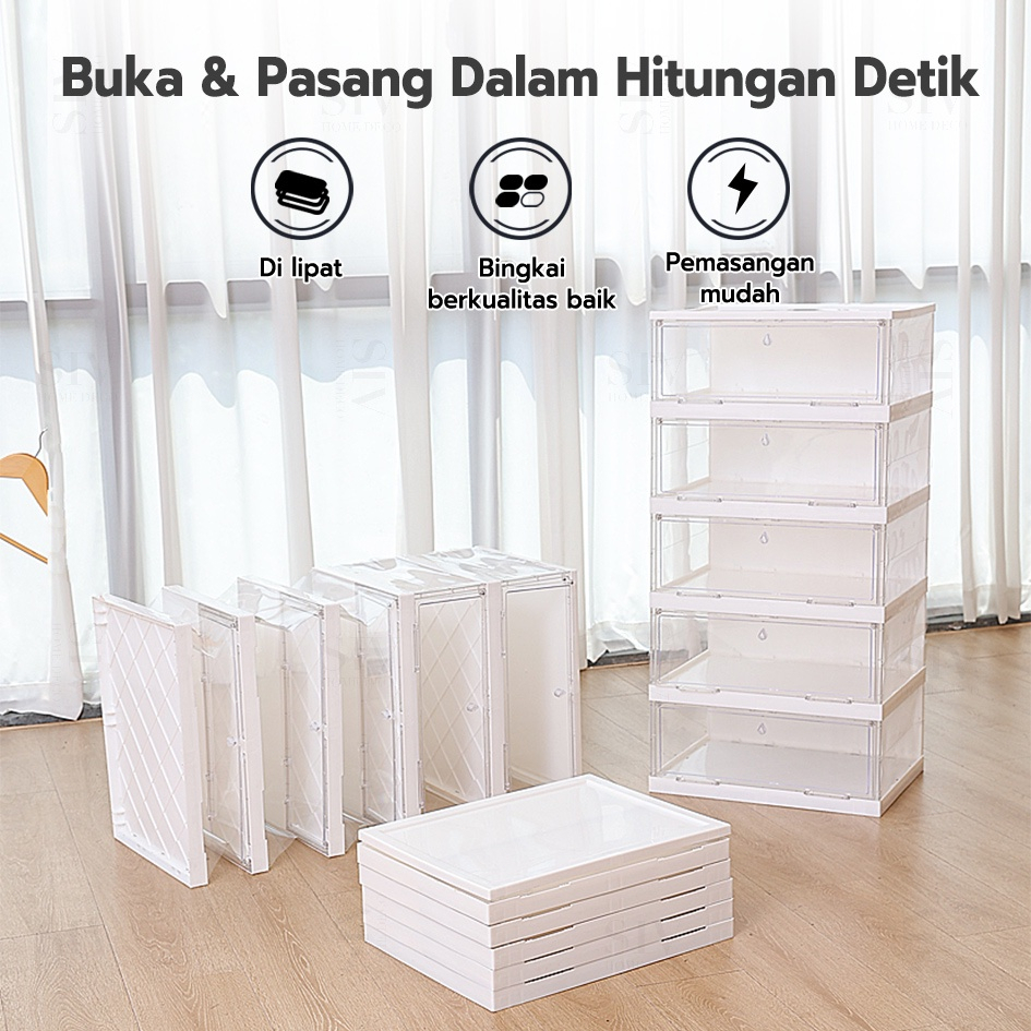 Detail 【Tidak Perlu Menginstal】Kotak Rak Sepatu Lipat Lemari Sepatu Transparan Plastik