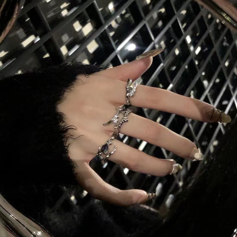 Aksesoris Fashion > Cincin > Tiga Potong set Cincin Untuk Gadis Siswa, Batu Permata Desain Trendi Dan niche, Cincin Jari Telunjuk Yang Dapat Disesuaikan Pembukaan Yang Canggih Dan Dipersonalisasi
