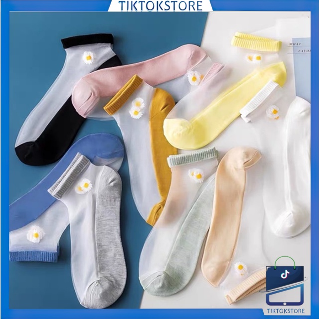 Sepatu Wanita > Kaus Kaki & Stocking > Kaus Kaki > TIKTOK - D2019 Kaos Kaki K5010 / Kaos Kaki Transparan / Kaos Kaki Wanita / Kaos Kaki Motif Bunga / Socks