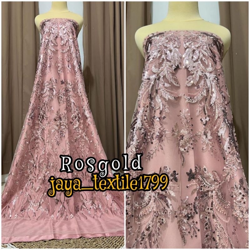 Ready Bahan kain Tile full Payet bordir, Harga untuk 0,5m (Pertengah meter) lebar/bidang 1,4m