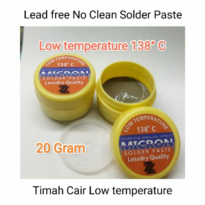 Timah pasta solder Low temperatur / suhu rendah No Clean Solder Pasta LEADFREE/ Tanpa timbal Anti Kering Low temperature Netto: 20 Gram mesh : 20 - 38 um