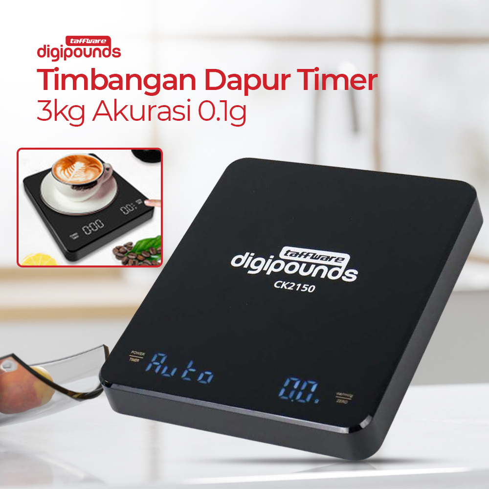 Apabila Anda membutuhkan sebuah timbangan khusus untuk menimbang kopi, timbangan dari Taffware Digipounds adalah pilihan yang paling tepat. Timbangan yang satu ini hadir dengan fitur canggih yang siap memudahkan Anda saat menimbang seperti timer, layar sentuh, heat resistance atau tahan panas dan lainnya. Tidak hanya untuk menimbang minuman kopi saja, timbangan ini cocok untuk Anda yang sering menimbang bahan-bahan makanan atau minuman dengan presisi, seperti saat membuat kue atau makanan yang membutuhkan akurasi yang baik.